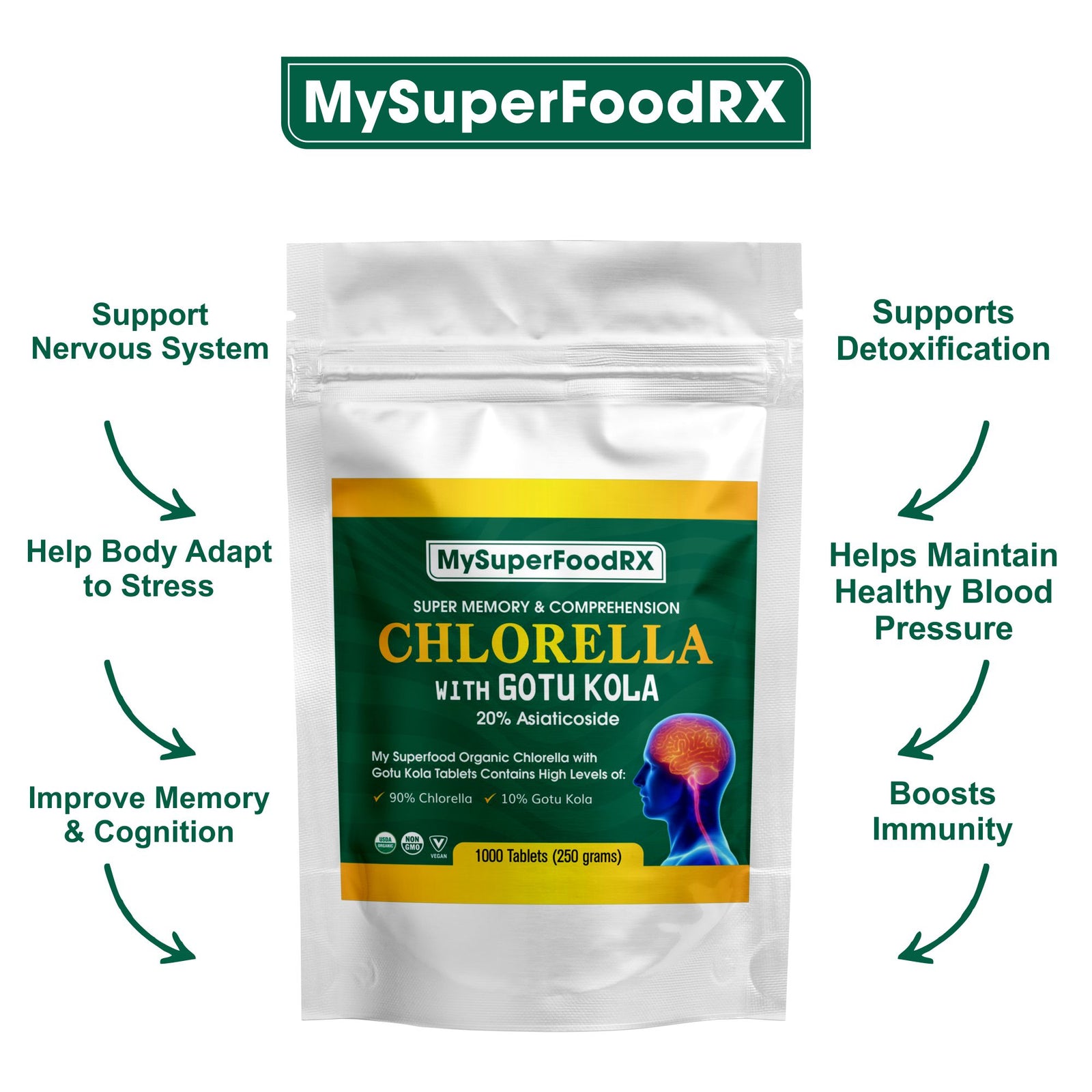 MySuperFoodRX 90% Chlorella 10% Gotu Kola Tablets